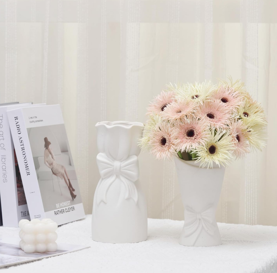 Below are some beautiful vases that hint at the bow trend, but are neutral enough to blend with different aesthetics or seasons. I felt so lucky to snag a two pack of slightly different white ceramic vases for 30$ each at amazon, but sadly, they are not currently being sold. I have found this single options in white which is very similar.