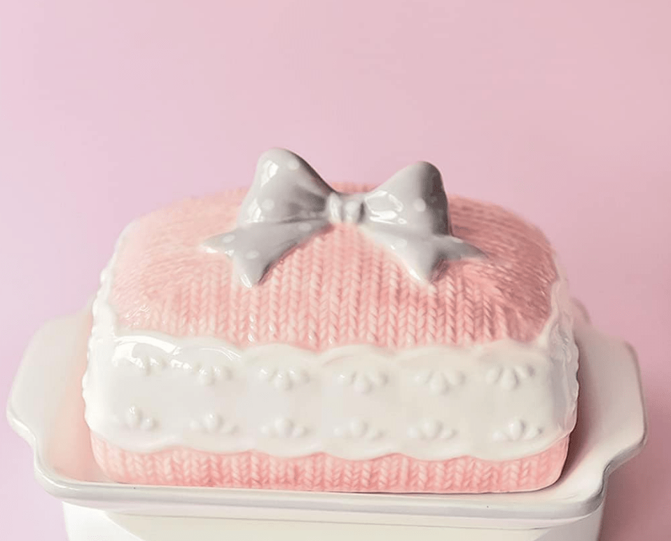 I have been loving this pink bow option for the winter to spring season. It appears small but fully holds a stick of butter and looks so nice in my kitchen. If you are looking for something a little more demure, that still encapsulates the feminine coquette aesthetic, here is another option.
