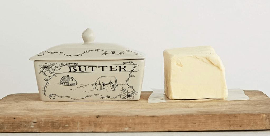 For good measure, I am including one last butter dish option that could blend into so many different trends. A little coquette, a little Americana, overall a great neutral option that could work well if you have roommates or a family.